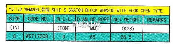 • YJ172 SHIP'S SNATCH BLOCK WHM200 WITH HOOK OPEN TYPE